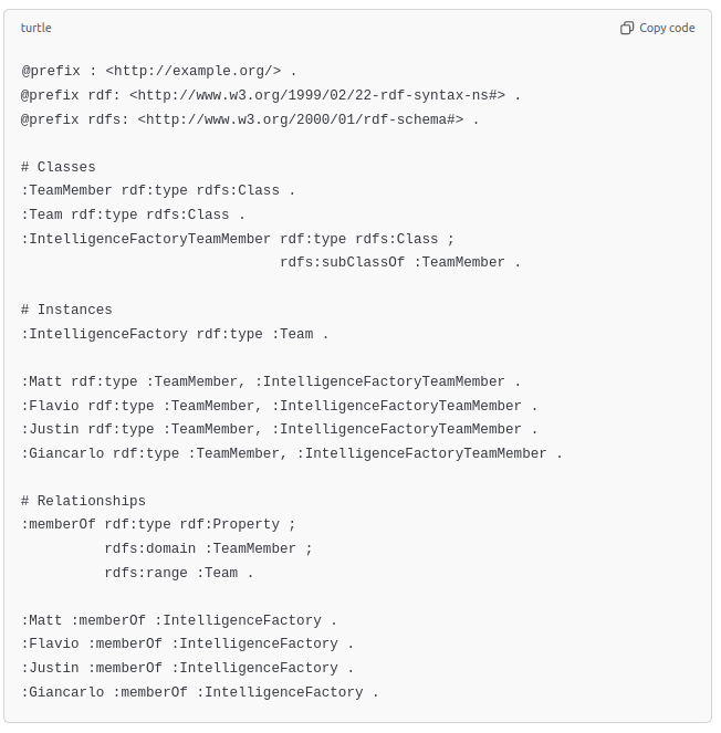 For comparison, here is a similar graph implemented in RDF format: