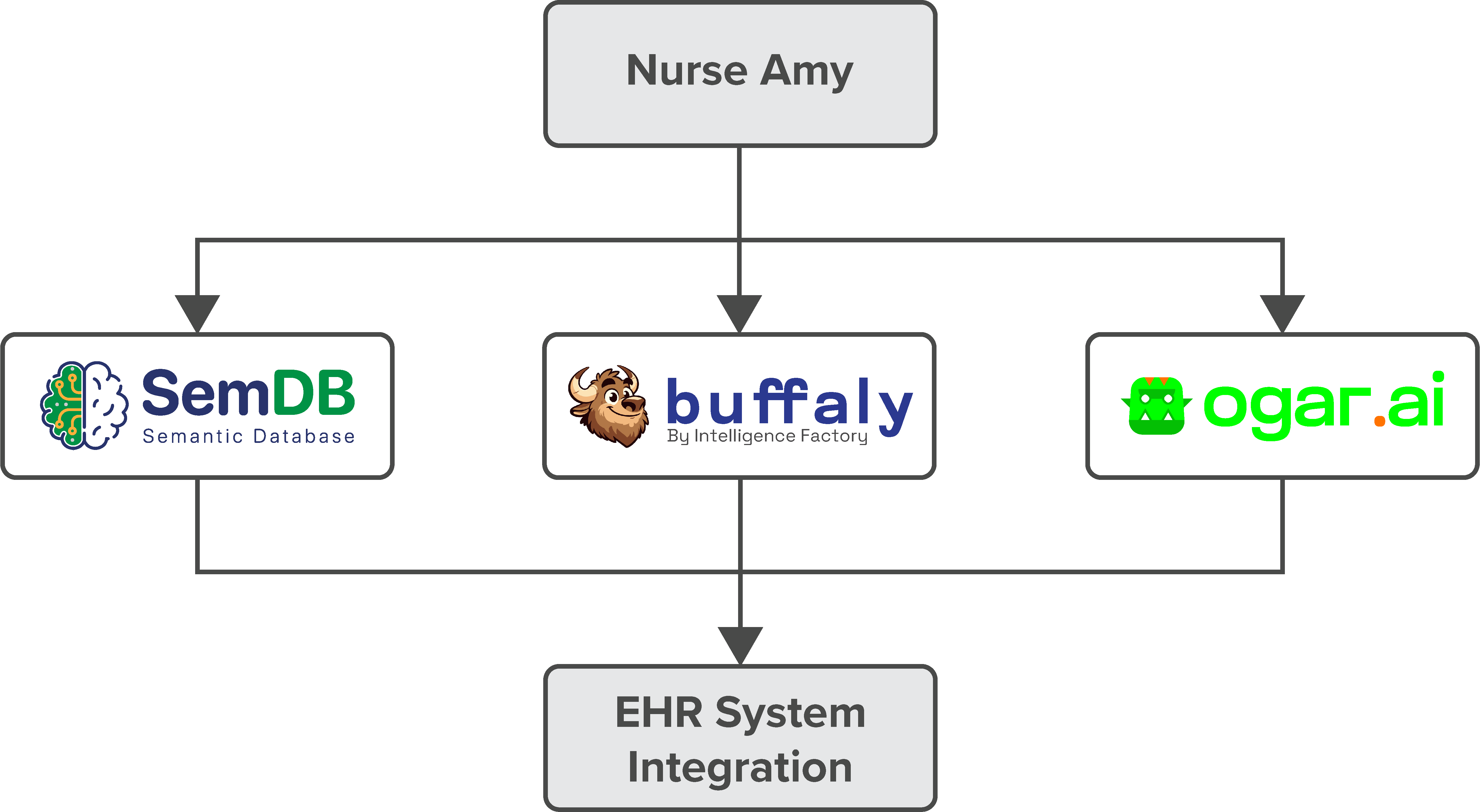 There are no calls to OpenAI. No black-box models. Every decision Nurse Amy makes is traceable to a rule, a script, or a structured care plan.