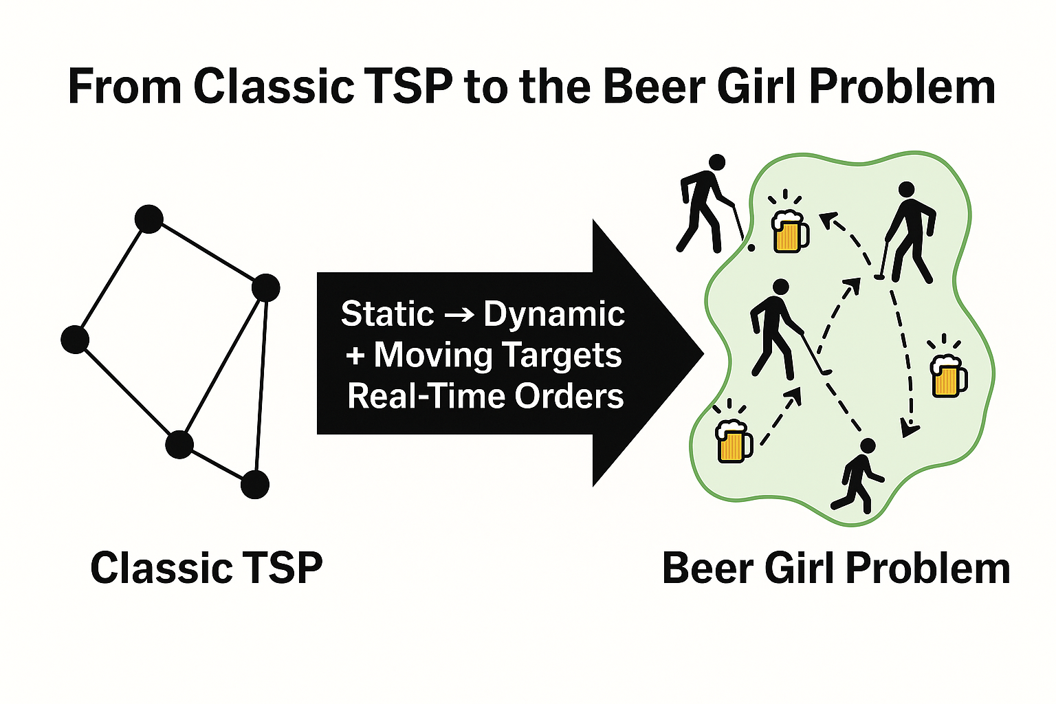Most high school math students have come across the Traveling Salesman Problem. It’s a classic way to illustrate how complexity explodes factorially when you try to optimize a route between cities. Now imagine a similar problem—but with a moving graph, unpredictable demand, and golfers who get ornery if they don’t get their drinks in time.
