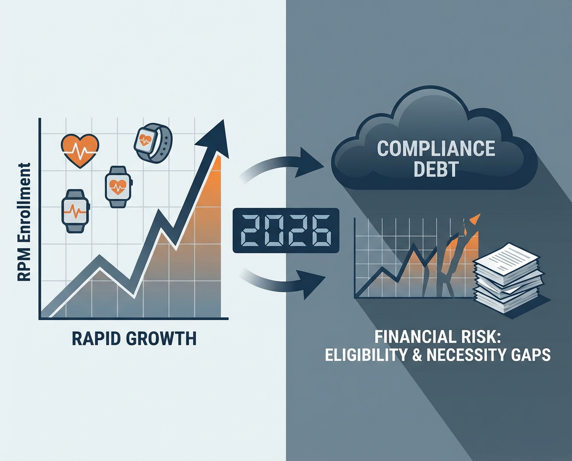 If you run your own RPM program, tighter coverage and reimbursement volatility create pressure to add patients to keep revenue steady. But when enrollment grows faster than your ability to document eligibility, medical necessity, and clinical management, you are not scaling income. You are scaling exposure.