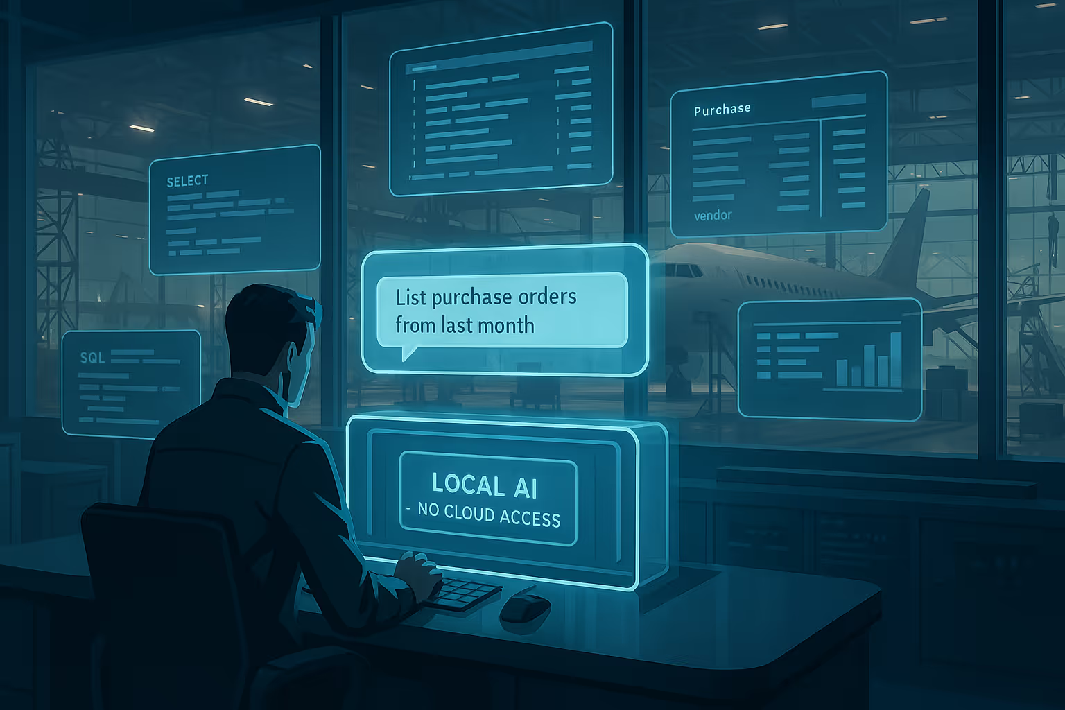We delivered a complete natural language interface over a massive legacy ERP database, with zero hallucinations, zero cloud risk, and full traceability. Users can now ask operational questions in natural language, and the system responds quickly, safely, and precisely.