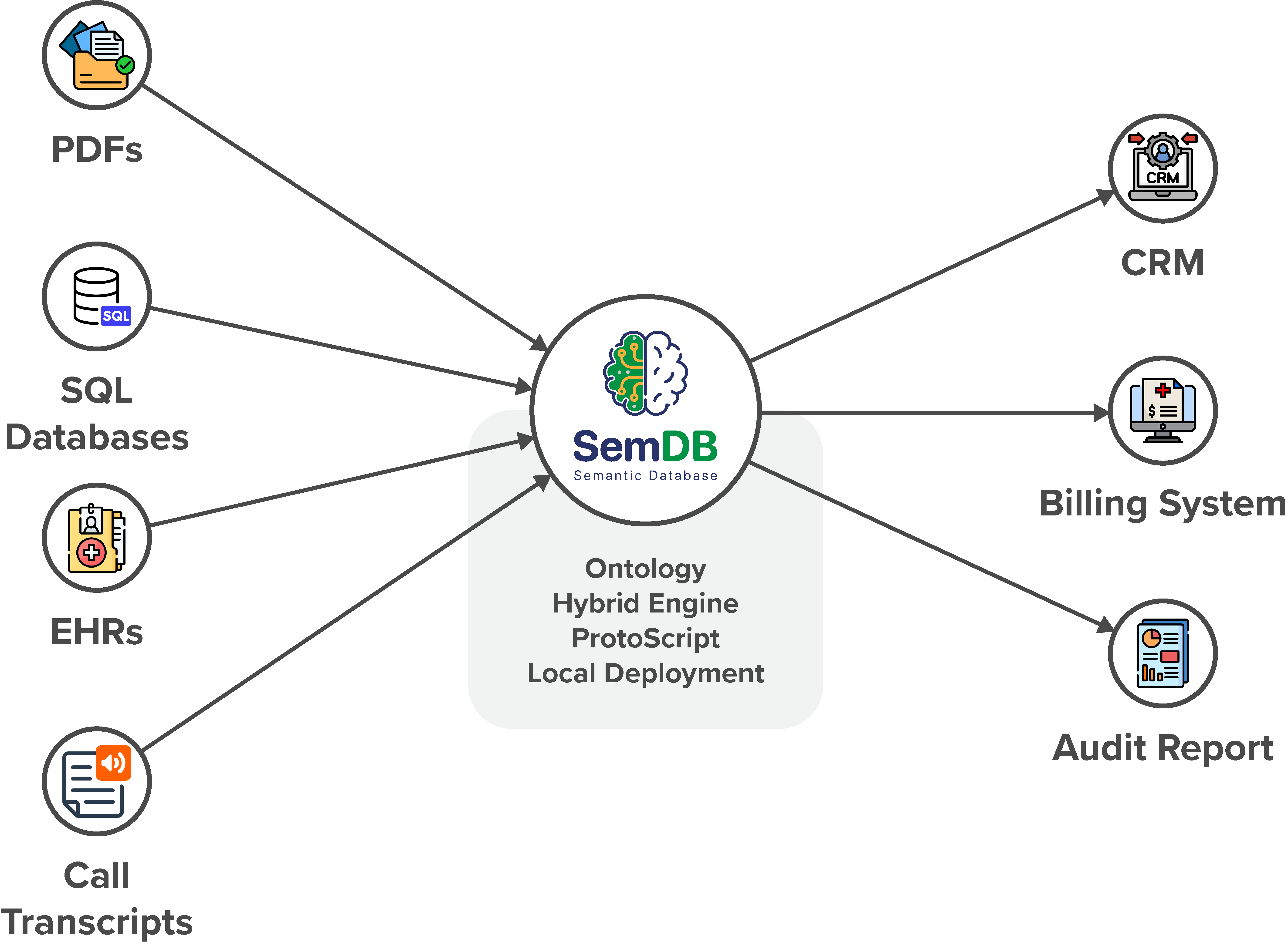 ambiguity, and limited reasoning capability, SemDB uses structured